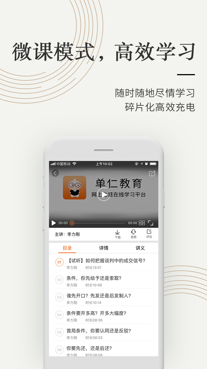 一、 课程与介绍1、 我们在线app可对课程评论,查看讲义;