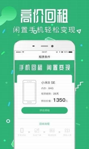 租手机安卓版是一款回收手机类软件,用户可以在租手机中对自己的手机进行价格评估,然后平台将会按照手机的基本信息给出一个价格,之后用户就可以直接将手机寄到指定的地址就可以了。平台在收到货物的一天之内就会将钱打进账户里面。