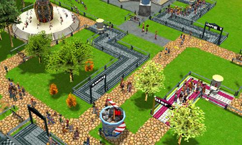 另外,每一个游乐设施的入口处都必须修建一条排队通道,这也属于道路建设的一部分。修建排队通道的原则是:尽量走直线,避免拐弯。势必要拐时,也要拐大弯,不要拐死弯。而且在弯角处还应该种植一两棵树木,这样可以提高游客的“快乐度”。排队通道的长度也有讲究:太短容易造成设施的上座率不足,太长又会使排队等待的游客们产生烦躁心理。所以玩家需要在游戏中根据设施的实际上座率情况及时调整通道的长度——短了可以加几节,长了则可以通过鼠标右键点击多余的通道拆除之。