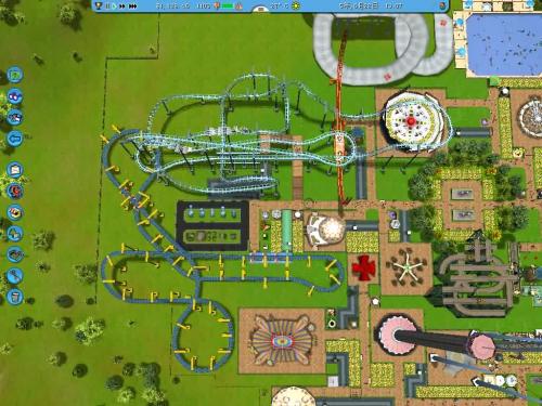 在游乐场建设初期,可以先在大门附近快速安排几个造价不高的小型游乐设施(如滑梯、旋转木马等),开放它们,同时还要开放游乐场大门;先把游客们放进来并使得他们能够开始玩耍,这时便可以开始在大门口附近紧挨着这些辅助设施的地方建造过山车。过山车一定要建在游乐场大门附近,这是保证客流的基本原则。过山车建好并开通后,可以在其周围建设生活设施,然后根据需要再在过山车后面建设其他游乐设施。
