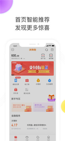 1、【指纹支付】更快捷,更安全,1秒支付,无惧被盗;2、【扫码支付】付款就用沃钱包,30万家商家任性扫;