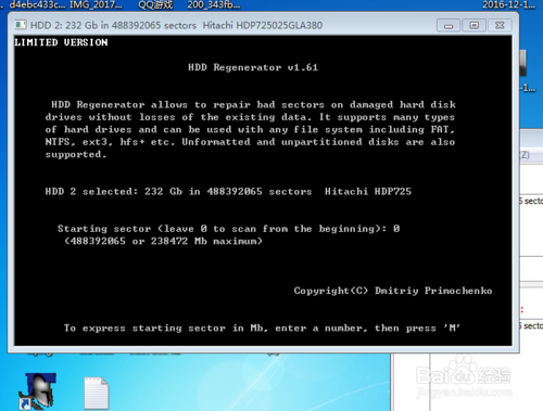 这个页面是要你选择起始扇区的,如果你知道坏的扇区就直接在0的位置输入,starting sector leave 0to scan from the beginning 起始扇区离开0从开始扫描 ,直接回车软件开始自动查找。