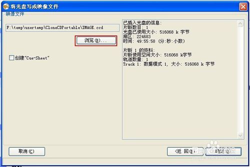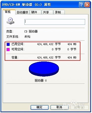 克隆带防盗圈的光盘的方法:1.将光盘放入光驱,查看光盘属性有404M的容量,