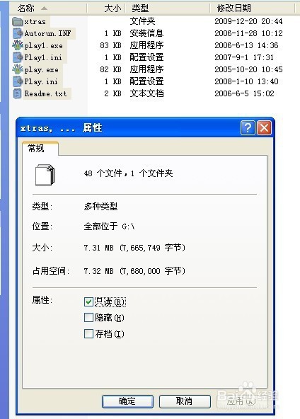 2.双击进入光盘,全选所有内容查看属性却只有7.31M的内容,这样将近400M的内容是被隐藏起来了。直接拷贝只能得到这7.31M的东东。