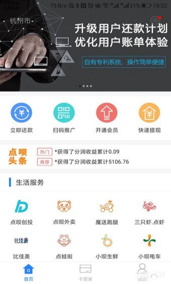 点呗卡卡app科学的信用卡消费计划,安心,省心,快捷实惠的线上信用卡还款服务软件。在点呗卡卡app高认证模式,避免信息泄露,智能还款,即时到账,解决“懒人”用卡烦恼。