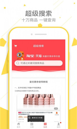 1:淘宝券:收录淘宝天猫内部优惠券,先领优惠券再下单,超高折扣。2:品牌特卖:各种淘宝天猫品牌超级券,知名品牌、服装、美妆、母婴、家居、美食券应有尽有!