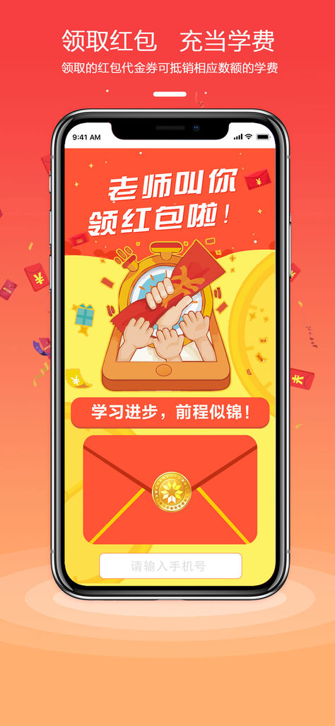 【领取红包 充当学费】在金牌君app领取的红包代金券可抵销相应数额的学费。