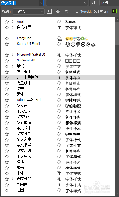 最后,我们打开ps就可以在字体中找到我们安装的字体了。