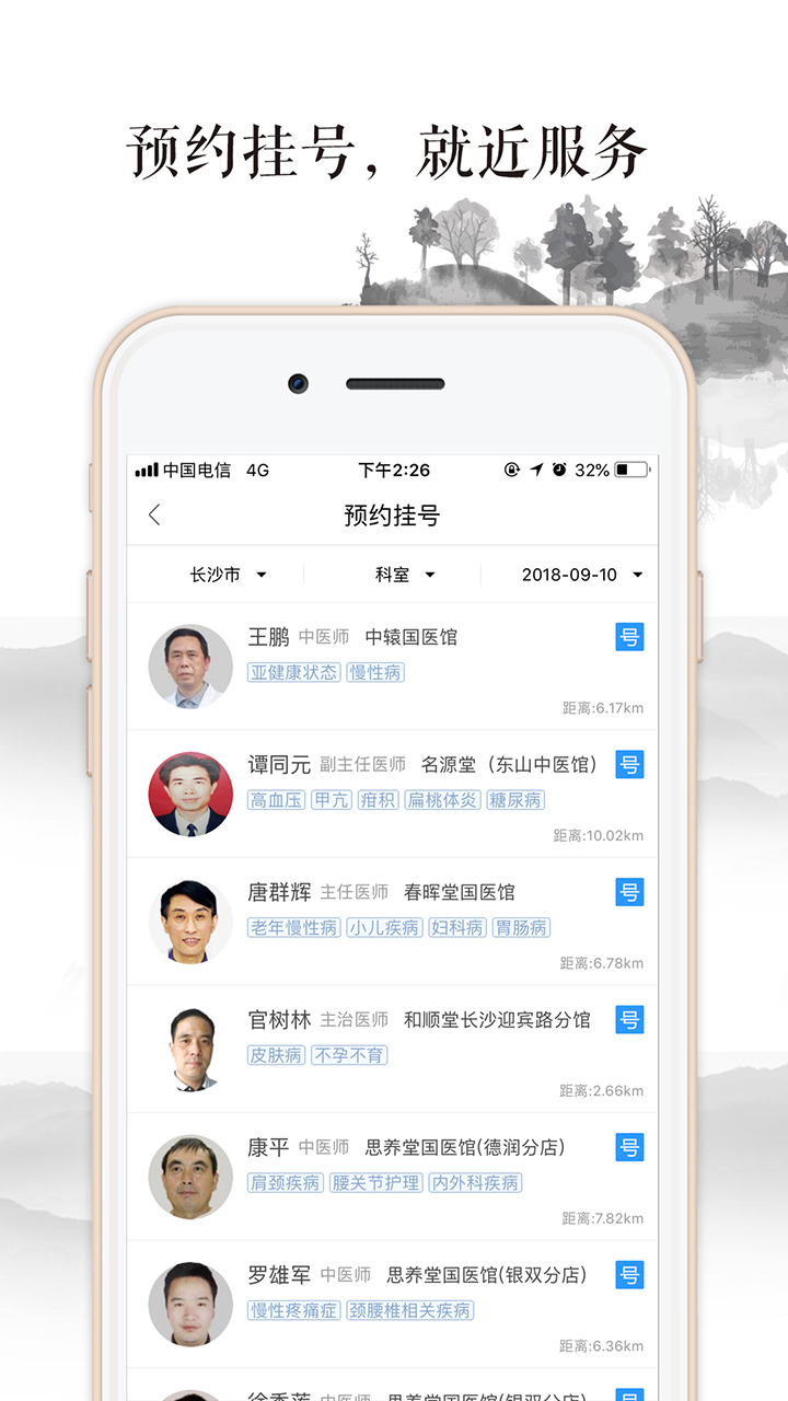 1. 预约挂号,就近服务用户可选择就近的中医馆、名中医,在线预约,方便省时。