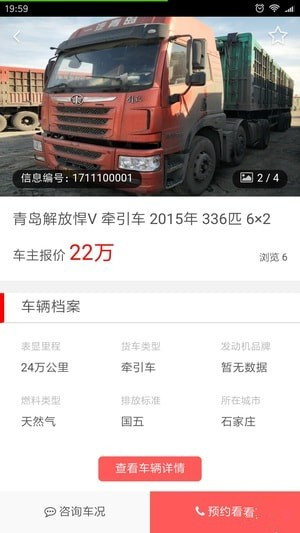 【买车】该平台拥有大量优质的二手货车信息,保证二手货车信息的真实可靠。【卖车】拥有专业的营销团队,让卖家更快,价格更合理的卖掉您的车。