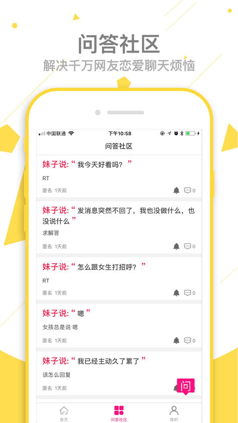 2. 问答社区提供交流平台,聚焦恋爱聊天技巧,跟有经验的人一同探讨;