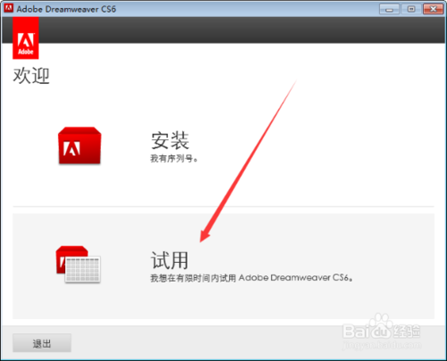 由于Dreamweaver CS6是收费软件,这里我们先断开网络,避免安装中出现验证Adobe帐户,点击试用,如下图事实上。