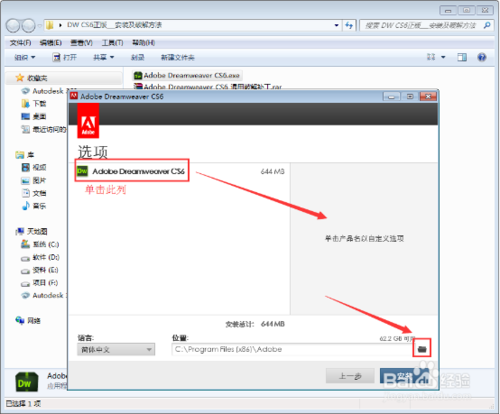 进入Dreamweaver CS6安装路径选择和Dreamweaver CS6插件选择界面,Dreamweaver CS6默认安装在C盘的。(路径可更改)具体的看下图,如下图所示。