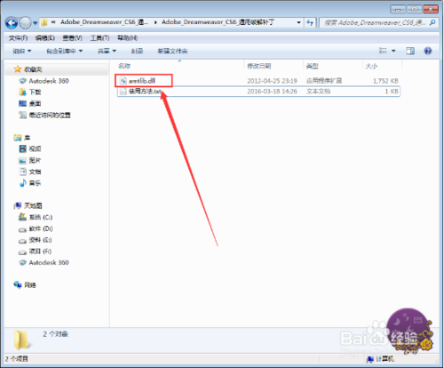 打开文件里的Adobe_Dreamweaver_CS6_通用破解补丁文件,找到amtlib.dll 文件。如下图所示