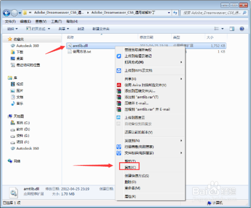 此amtlib.dll补丁文件是通用补丁,如果自己有amtlib.dll补丁文件也可以使用,使用方法一样,右键选择复制,如下图所示。