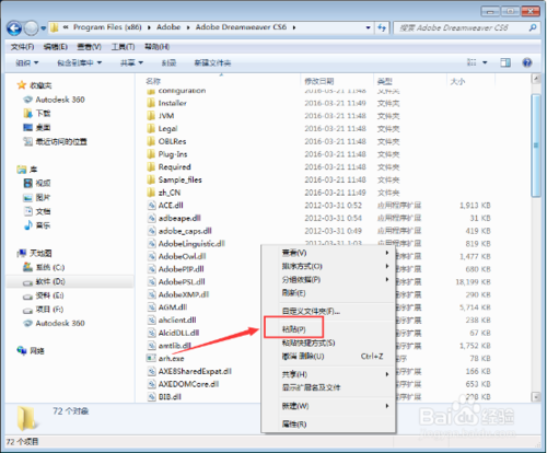 打开我们安装Dreamweaver cs6的目录,直接按下Ctrl+V或者右键单击粘贴