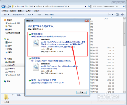 系统提示是否替换原来的amtlib.dll文件,点击移动和替换就可以了,如下图所示。