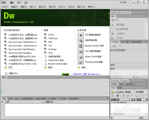 Dreamweaver CS6 制作一个简单网页打开DW,DW界面如图