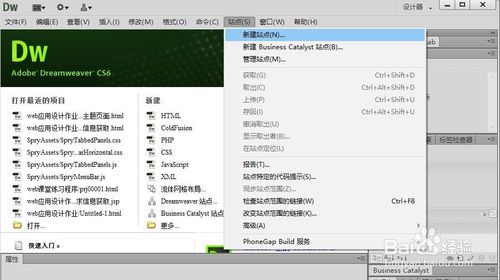 怎样使用Dreamweaver CS6 建立站点管理打开站点下的新建站点
