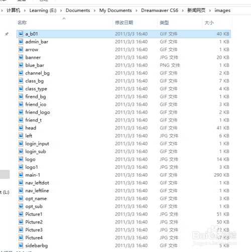 在新闻网页文件夹下新建“images”文件,导入制作网页所需要的素材,这里所需要的素材都是图片
