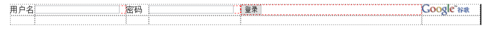 插入按钮,同上面插入图像的处理方法那样处理,如果不知道填什么就一直“确定”,无妨。在属性栏里的值改为“登录”。然后插入图像“谷歌logo”,附上效果图