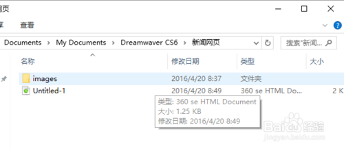 在第二行插入图片。完成页面制作。保存HTML文件。然后在站点“新闻网页”可以看到保存的HTML文件