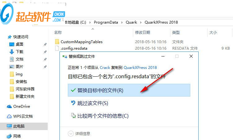 1、quarkxpress 2018安装完成后,先不要运行软件,将Crack破解文件夹中的.config.resdata复制到C:\ProgramData\Quark\QuarkXPress 2018目录中