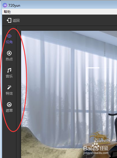 在紫色框处选择热点切换到的场景,并框选是否显示热点的名称(显示场景名选项)