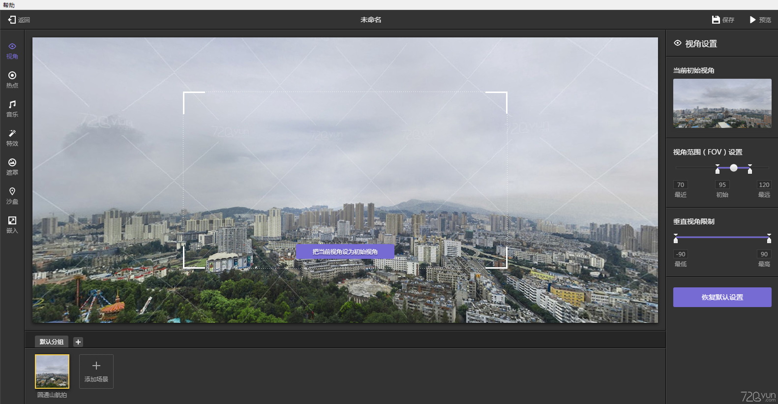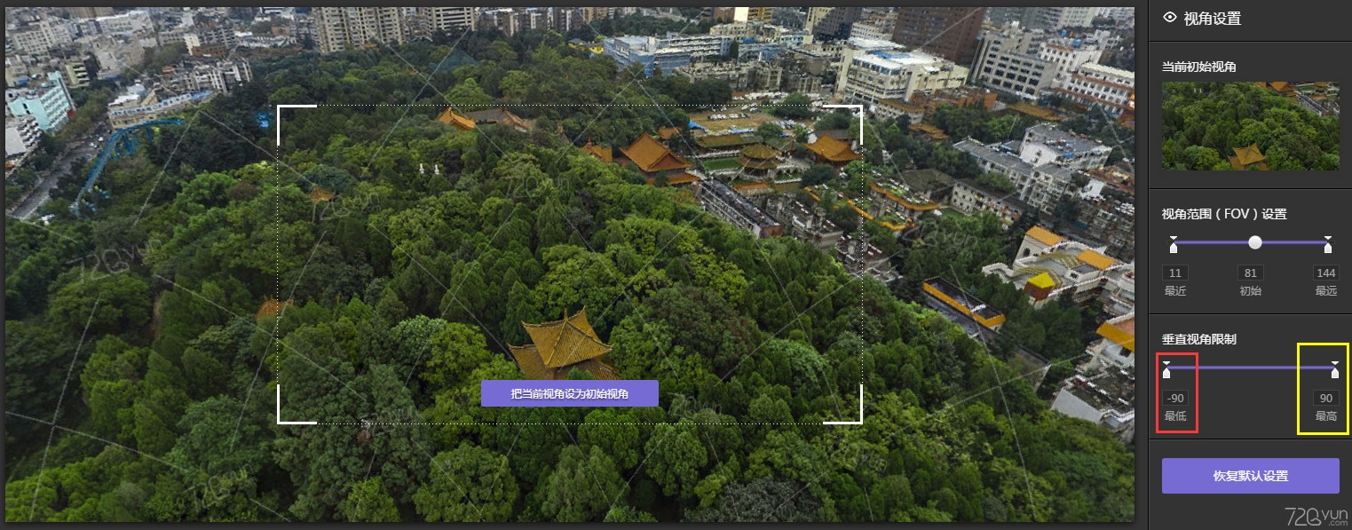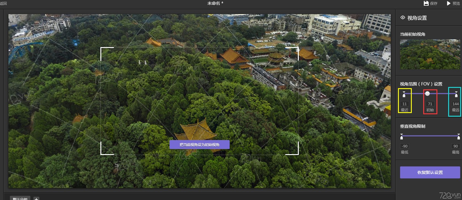 FOV设置,简单来说就是一个全景作品能够被放大/缩小到什么程度。