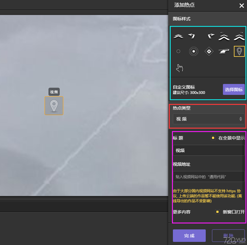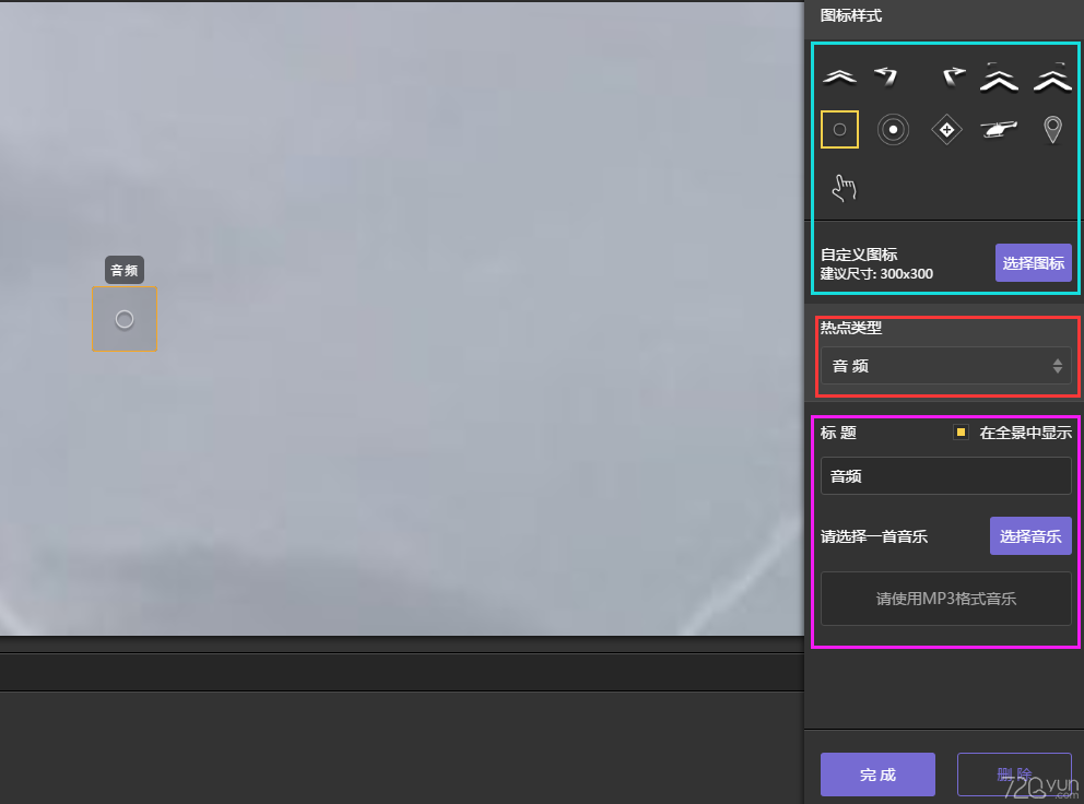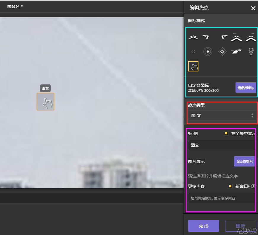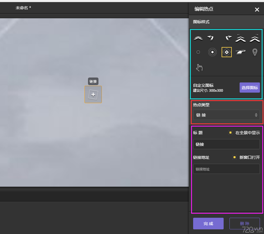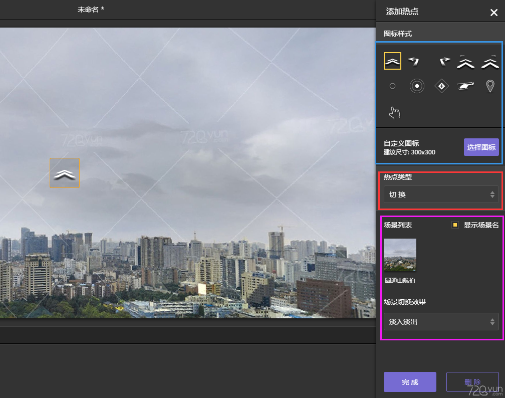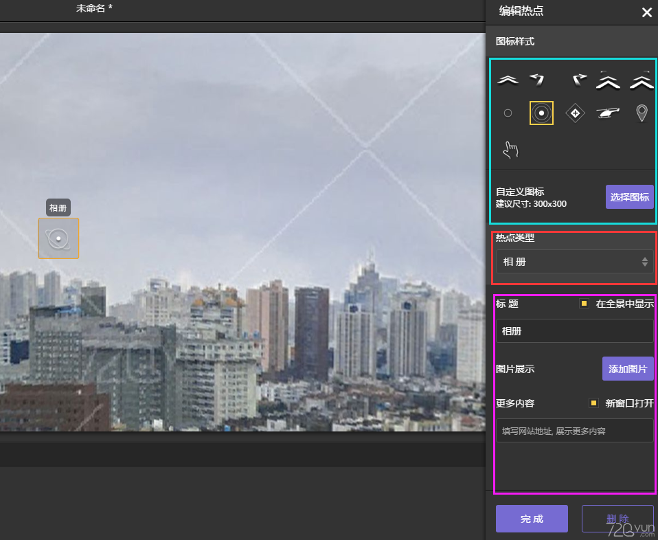 完成设置后拖拽热点到合适的区域,点击完成保存。