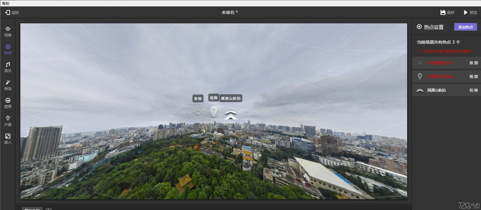 热点菜单下,右侧会列表显示场景中所有的热点列表。