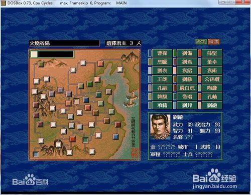 选择君主先选择以为自己喜欢的君主,不会玩的选择曹操、袁绍等比较强的君主,会玩的可以选择孔融、韩璇等弱势君主。