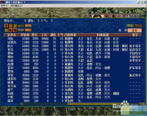 把能招募的人才都招募过来,基本能力数据越高越好(武力:训练打仗单挑,智力:计谋军事,内政:就是内政,魅力:君主魅力越高越好),武将阵形和战斗技能越多越好(妖术之类更BT),记得赏赐提高忠诚度哦。