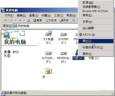 尽管在Windows的资源管理器中可以右击光盘,并选择"弹出"命令,将光驱中的光盘弹出(如图3),但是却没有一个"进仓"命令关上CD盒,这不得不说是Windows的一个Bug.不过,笔者在使用超级解霸自动伺服器的过程中发现,它可以起到一个CDROM驱动器的软件开关作用.具体的方法是:安装完《超级解霸》后,右击任务栏上的系统伺服器图标,在弹出如图4所示的菜单中选择"弹开所有CD-ROM"命令,就可以将本机上的所有CD-ROM(不包括刻录光驱CD-RW等设备)的光驱盒盖打开,供您进盘,如果您要关闭盒盖,只要再次选择"关闭所有CD-ROM"菜单即可.这样使用起来一来比较方便,二来减少了硬件的损坏,真是一举两得.