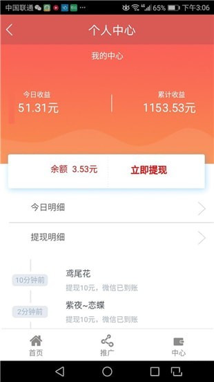 ②一级下线20%提成,二级提成10%,5元起微信提现