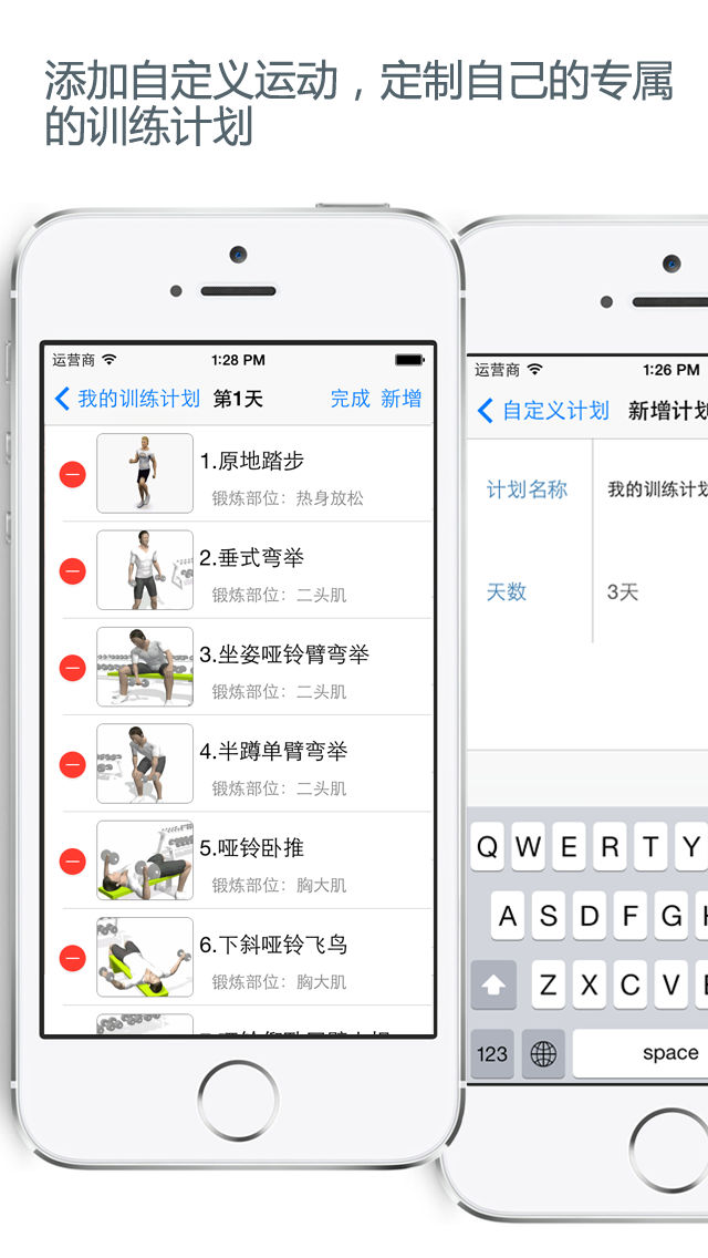 -自定义健身计划,您可以根据自身情况轻松定制最适合自己的健身计划,选择训练动作、选择训练强度等等随心所欲
