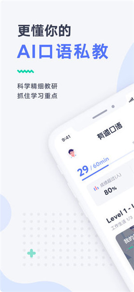 更懂你的AI口语私教——科学精细教研,抓住学习重点。自适应专业评测——自适应定制评测,精准定级水平。