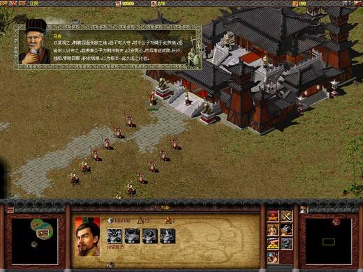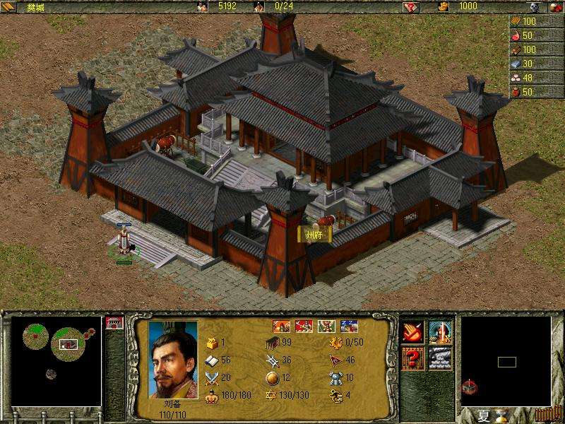 城池的发展:在大部分能发展城池的关卡中,敌人一般从初期就会派兵不断的进攻,而且一次比一次凶狠。为了能保住城池,初期发展的方向就是要快速制造出投石车协助城防。一般的建造顺序是先建一个农场和一个作坊,一旦资源条件满足,立刻建翰林院,研发投石车科技。注意及早派民夫去采矿。然后建造兵器坊,出投石车。一个投石车需要木材三百,所以伐木的民夫数量一定不能少,可以让新招募的民夫先都取伐木,作坊里可以先不派民夫,初期的食物和酒水可以支撑一段时间。集中人力采伐木材和铁矿两项资源,至少造出五六个投石车。在将翰林院升级,建造三种兵营后就可以建造高级兵营,把现有部队升级。然后建造一个客栈,这样就可以建造寺庙,靠祭祀来恢复部队的生命值。别忘了任命祭祀官员。然后就可以慢慢发展食物供给,建造马厩,积攒兵力了。