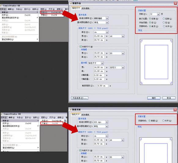 1、如果是漫画作品,页数多余1页的,就选择 新建---->页面--->