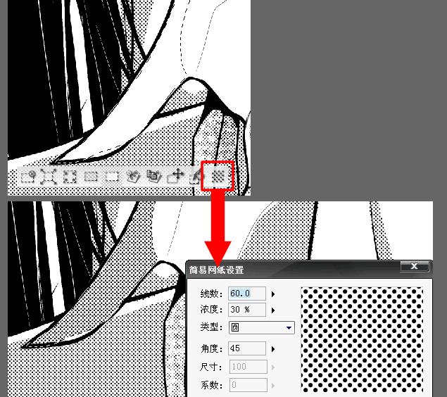 网点纸使用方法之二:打开素材窗口,选一张网点,贴!