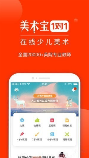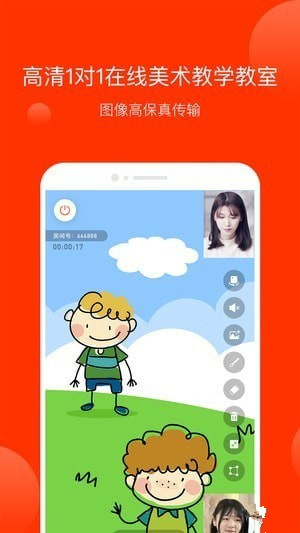 美术宝1对1app有1对1真人在线陪画,与孩子实时互动,学习不枯燥;