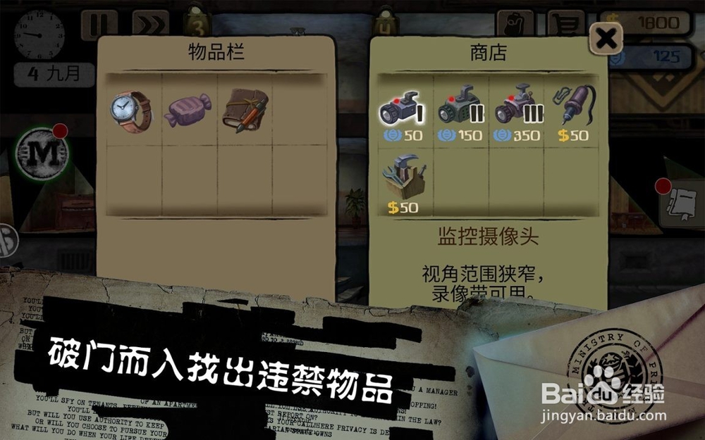 2.如果你偷玩物品发现警察在门口,不必慌张,读档,记住是第几次被发现,任何把违禁品放家里,因为罚款会没收违禁品。随便偷一个不是违禁品的东西,然后选择罚款,因为声望可以换成摄像头去卖是可以得非常多的钱的。