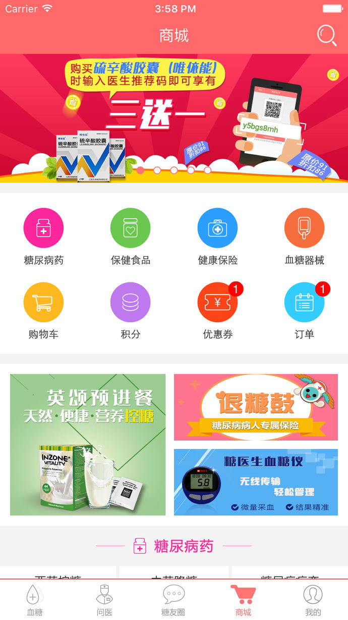 [在线商城]提供各类血糖仪及耗材、健康保健食品、医疗器材、线下健康服务等,打造糖尿病患者专属商城