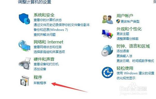 在打开的控制面板窗口中点击“卸载程序”快捷链接
