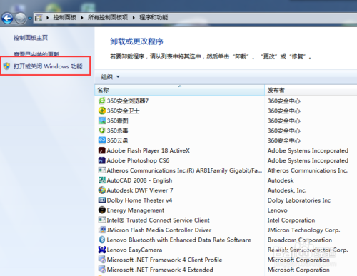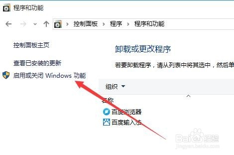 单击窗口中的“打开或关闭 windows功能”(在窗口左上方),如图所示