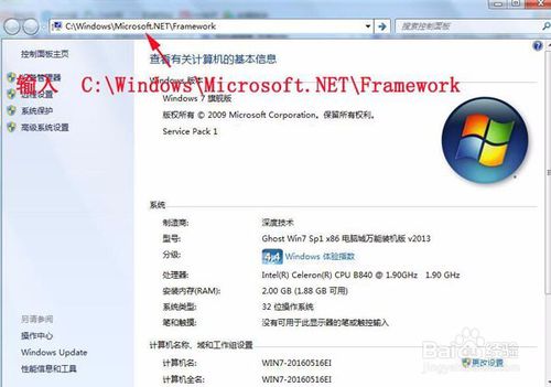 在窗口地址栏中输入地址 C:\Windows\Microsoft.NET\Framework