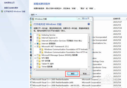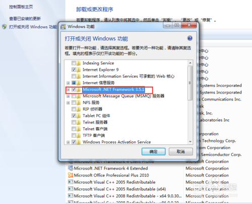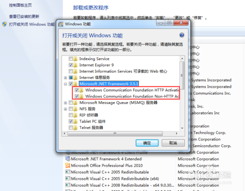这时可以看到在Windows功能窗口,找到.net Framework一项,这就是正在使用的该程序版本号