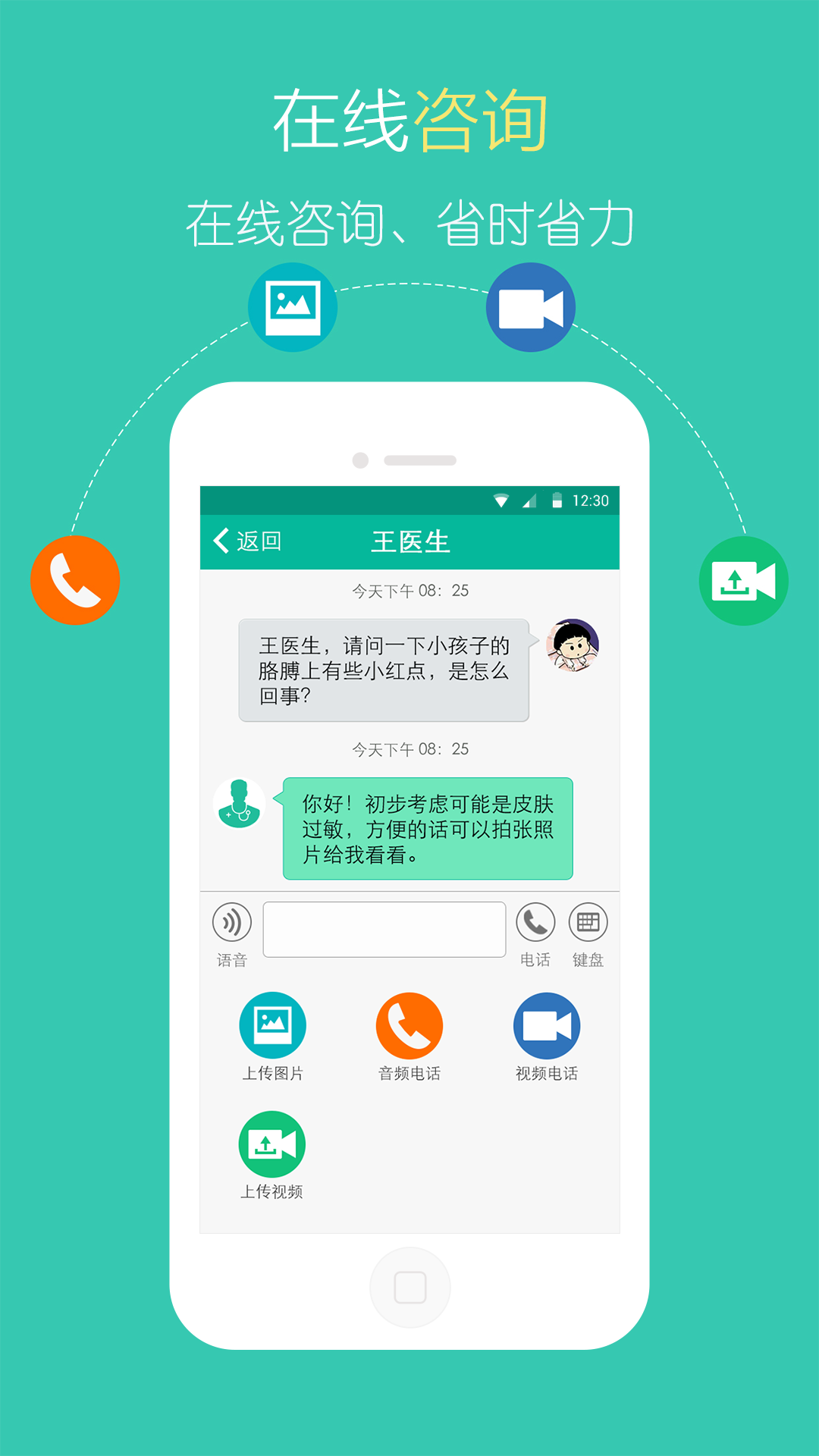 医宝系统作为您的私人医生,借助移动互联网技术,通过智能手机、平板电脑等通讯设备载体,建立整套基于患者健康档案大数据之上的医生与患者远程咨询交流平台,医生通过提供个性化的服务,对用户的健康进行规范管理,为患者提供语音、文本、电话、视频通话等多种方式的咨询服务。