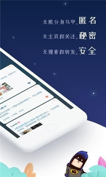 一、“三无”社交APP,无限分身马甲倾诉内心秘密无限分身马甲,没有身份和人设;无个人主页和关注,拒绝被追踪;无搜索和转发,不可被传播;