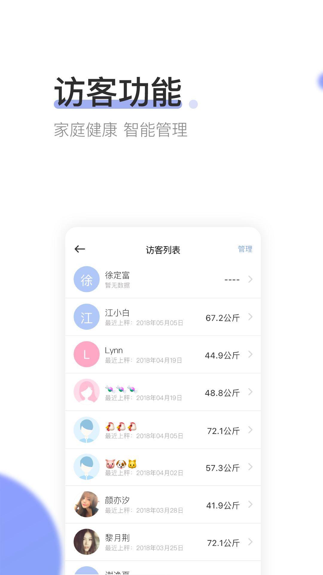 3、建立不间断体重、体脂跟踪体系,体重、体脂变化一目了然与好友分享;